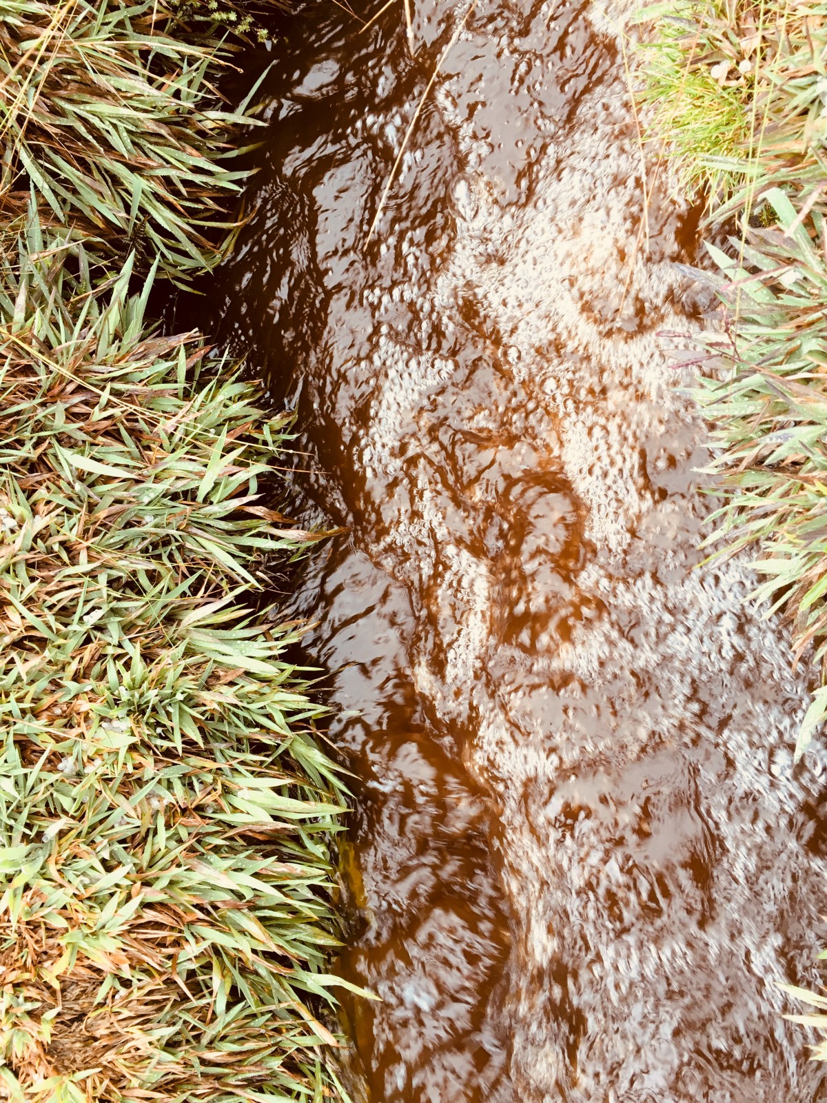 We pass a gushing stream and, as I was warned, it was a startling color.