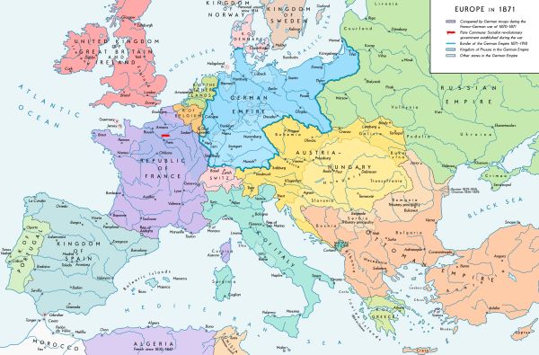 The Concert of Europe established in 1814 was shaken in 1859 when France and Austria fought over Italy. It came apart completely as a result of the wars of German Unification, when the Kingdom of Prussia, led by Chancellor Otto von Bismarck, defeated Austria in 1866 and France in 1870, replacing Austria-Hungary as the dominant power in Central Europe. Britain, diverted by the Irish question and averse to warfare, chose not to intervene again to restore the European balance. Bismarck did not wish the breakup of the Ottoman Empire to create rivalries that might lead to war, so he took up the Tsar’s earlier suggestion that arrangements be made in case the Ottoman Empire fell apart, creating the Three Emperors’ League with Austria and Russia to keep France isolated on the continent.
