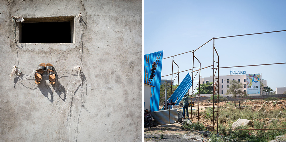 Left: Construction in Hyderabad. Right: A shop front in Hyderabad.