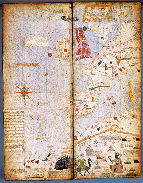 For a man or woman of the twenty-first century, the word โmapโ denotes, first and foremost, a document that contains the geographical information we need to help us identify and locate a place. For much of the Middle Ages, a map was essentially a symbolic document; conveying accurate information about distance and direction (by which, for example, a route could be charted) had not been the main goal of map-making. Traditionally, medieval maps of the world (mappae mundi) reflected Europeโs Christian worldview. Encyclopedic in scale and incorporating words and pictures, they conveyed ideas and knowledge relating to history, geography, theology, philosophy, and even zoology and their vision of the world was based on biblical and classical sources. By the thirteenth century, some travellers sought to create maps that would detail their actual, observed experiences of distances and geography; nautical charts that date from circa 1300 reflect this impulse. More often than not, however, presentation of this practical information did not replace story, belief, and tradition but rather tooka place alongside these perennial features of the map. A good example is the Catalan Atlas, a map produced in Majorca in the 1370s but given as a gift to the French king Charles V. The map includes the pictures, biblical sites, and vision of history typical of the mappaemundi; it locates the mythical kingdom of Prester John and (twice) the island of Brasil. It also, however, depicts the trade routes in Africa used by Catalan merchants, draws precisely the coasts of the Mediterranean, Atlantic, and Black Sea, and provides the rhumb lines necessary for navigation.