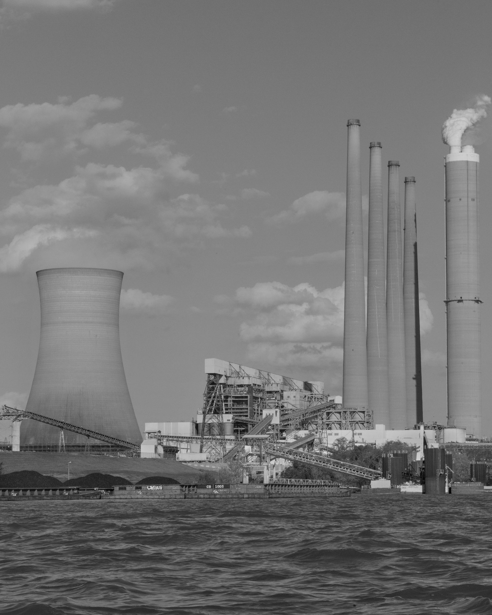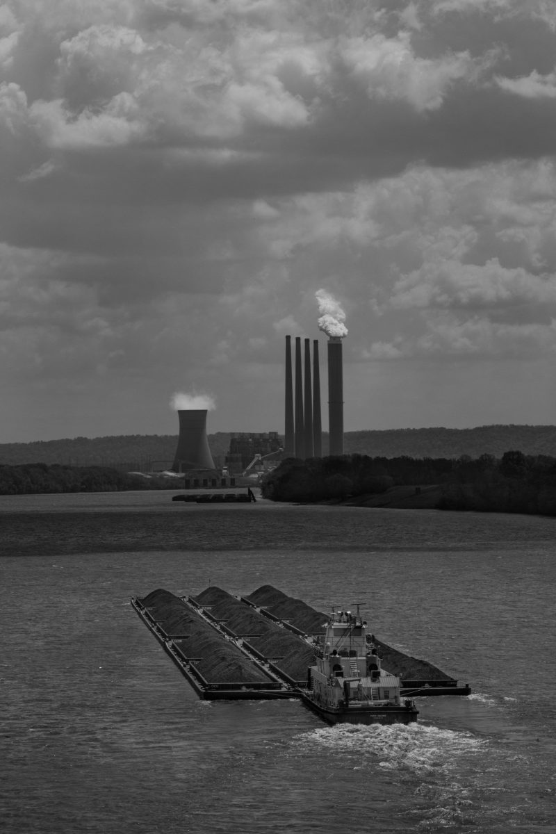 A barge transports coal to Stuart Station, one of two power plants in Adams County, Ohio that are scheduled to close. (Philip Montgomery for Bloomberg Businessweek)