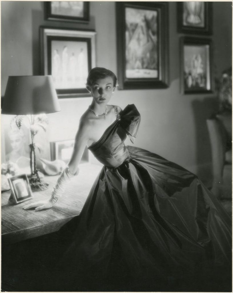 Lynes often shot fashion spreads in his apartment in Manhattan, which was lavishly decorated and provided a more personalized atmosphere than photographs shot in a studio. Lynes was also a master darkroom manipulator, working with his negatives and prints to achieve the look he wanted.