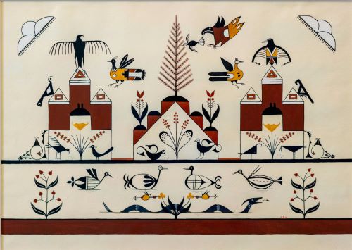 What happens when cultural appropriation takes place closer to home? Artists on the peripheries of the “West” like Carlos Mérida or Joaquín Gonzales-Torres subverted the hierarchies of Western and non-Western art as they became immersed in European abstraction and sought to integrate their own cultural heritage (marrying, for example, European modernist abstraction to pre-Columbian imagery) into an increasingly hybrid form of modern art. This final section looks at North and South American artists who draw upon Indigenous cultures of the Americas, sometimes in the service of reclamations of ethnic and racial identities severed through colonialism.