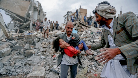 A child is rescued from the site of an air strike in Sanaa carried out by the Saudi-led coalition. Khaled Abdullah/Reuters