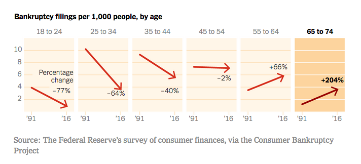 Entitled “Graying of U.S. Bankruptcy: Fallout from Life in a Risk Society,” the group’s report found that older Americans filed for bankruptcy three times as often from 2013 to 2016 as they did a quarter of a century before.