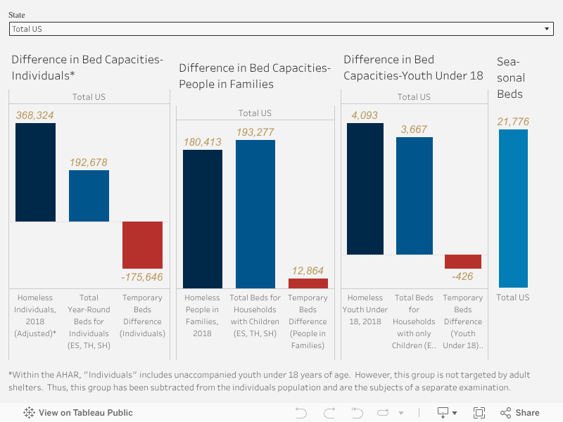Total People Experiencing Homelessness Compared to Temporary Beds Available, 2018