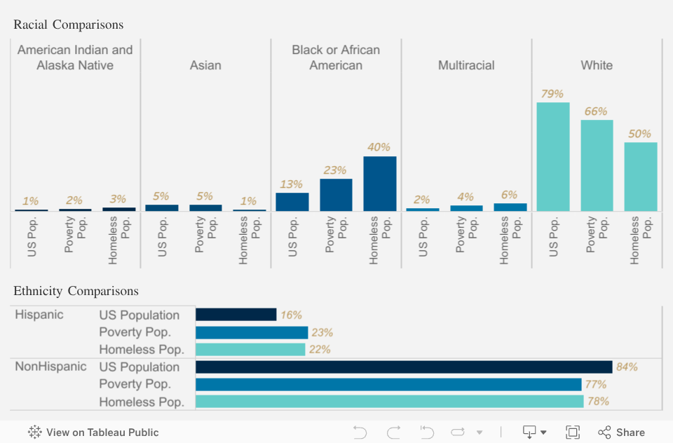 Gender and racial demographics are an important part of the American homelessness story. The homeless population is largely male. Among individual adults, 70 percent are men. White Americans are the largest racial grouping, accounting for 49 percent of those experiencing homelessness. However, African Americans and American Indians are dramatically overrepresented in the Point-in-Time Count compared to their numbers in the general population.