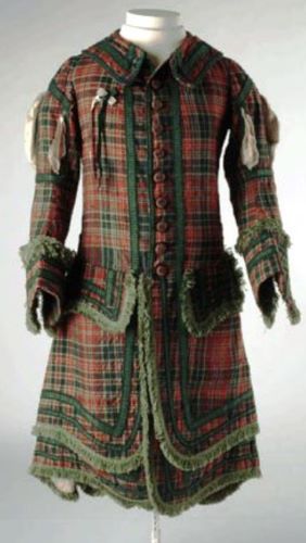 The original uniform of the corps appears to have been a “shooting” dress, consisting of a tartan, lined with white, trimmed with green and white ribbons; a white sash, with green tassels; and a blue bonnet, with a St. Andrew’s cross, a tartan coat, with knee-breeches and white vest; and a “common uniform”, the coat of which was “a green lapelled frock.”[24] Tartan was fashionable at the time as an expression of anti-Union and pro-Jacobite sentiment and many of the company were known Jacobites.