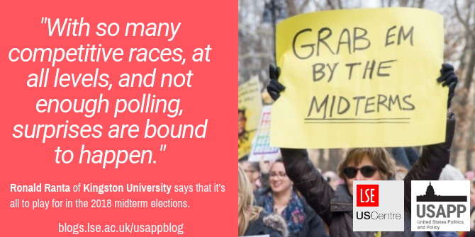 Why did the polls underestimate Trump’s appeal in the swing states? First, it is important to recognise just how close the results in the mid-West were. In Pennsylvania, Michigan and Wisconsin, Trump won by less than 1 percent. Second, the presence of two third-party candidates added a further complication. The votes cast for Jill Stein of the Green party exceeded the margin between Trump and Clinton in those three states, as well as in Arizona and Florida. Third, the most glaring failure was to underestimate the turnout and support Trump received from non-college educated whites. Nevertheless, looking at the major pollsters and their predictions, it was not so much that they got it terribly wrong, but that many in the mainstream media did not pay enough attention to how close the race was and that it was well within the margins of error. This brings us to the 2018 midterms and to whether the pollsters have learned the right lessons and have adjusted their models.